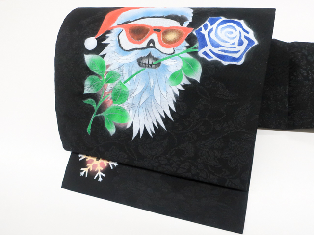- 《京都一輝堂》【着物】九寸名古屋帯 オリジナル 唐織本つづれ サンタクロース・ドクロ 24b-2680
