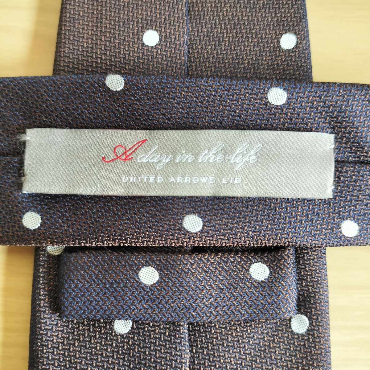- ユナイテッドアローズ(UNITED ARROWS)茶色白ドット模様ネクタイ