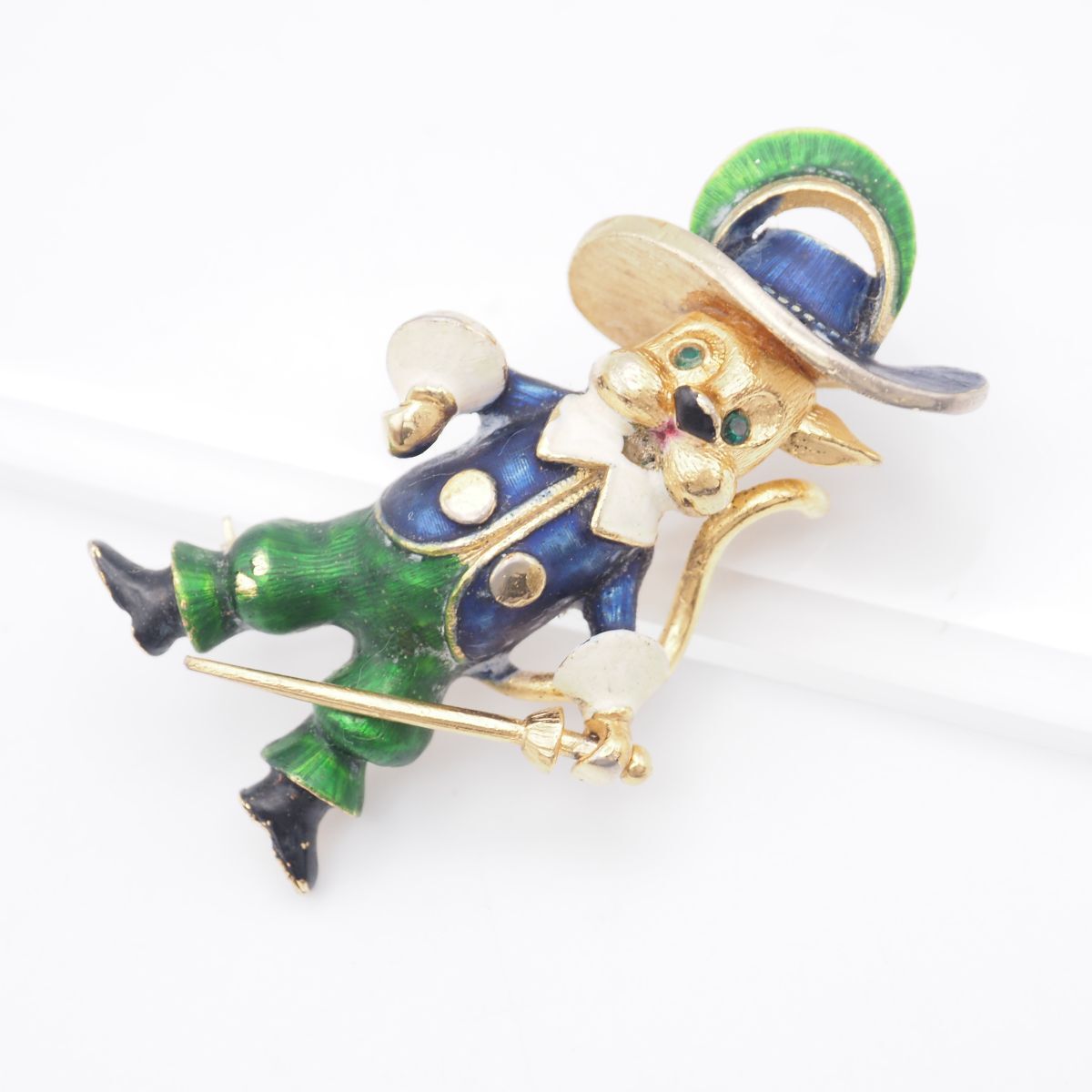 - F338 ブローチ 猫剣士 キャット マルチカラー エナメル ゴールド デザイン コスチュームジュエリー
