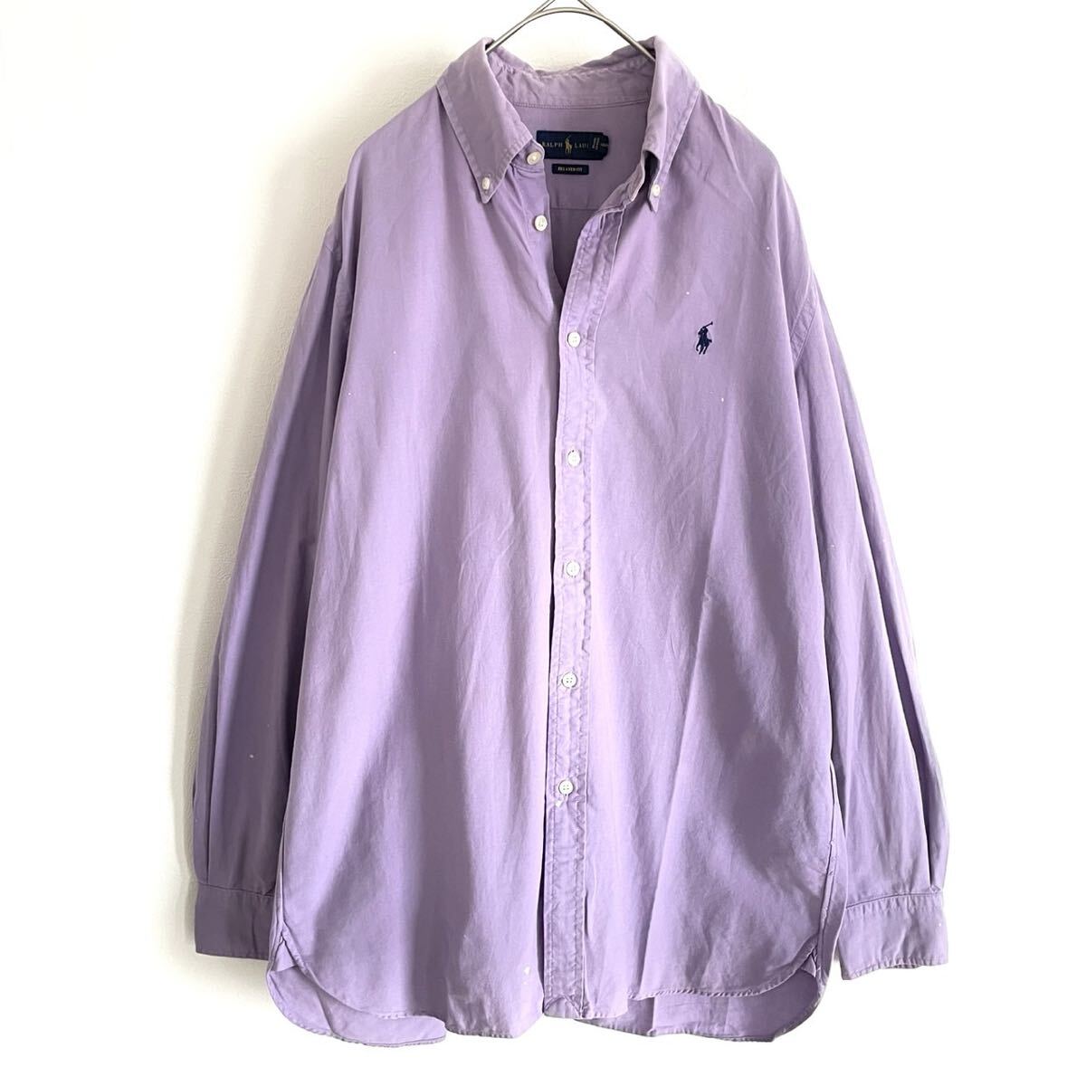 - 【ラルフローレン/リラックスフィット/ポニー刺繍】長袖 ボタンダウンシャツ/アメカジ古着/M表記/紫紺/衝撃プライス!1点限定販売★B64