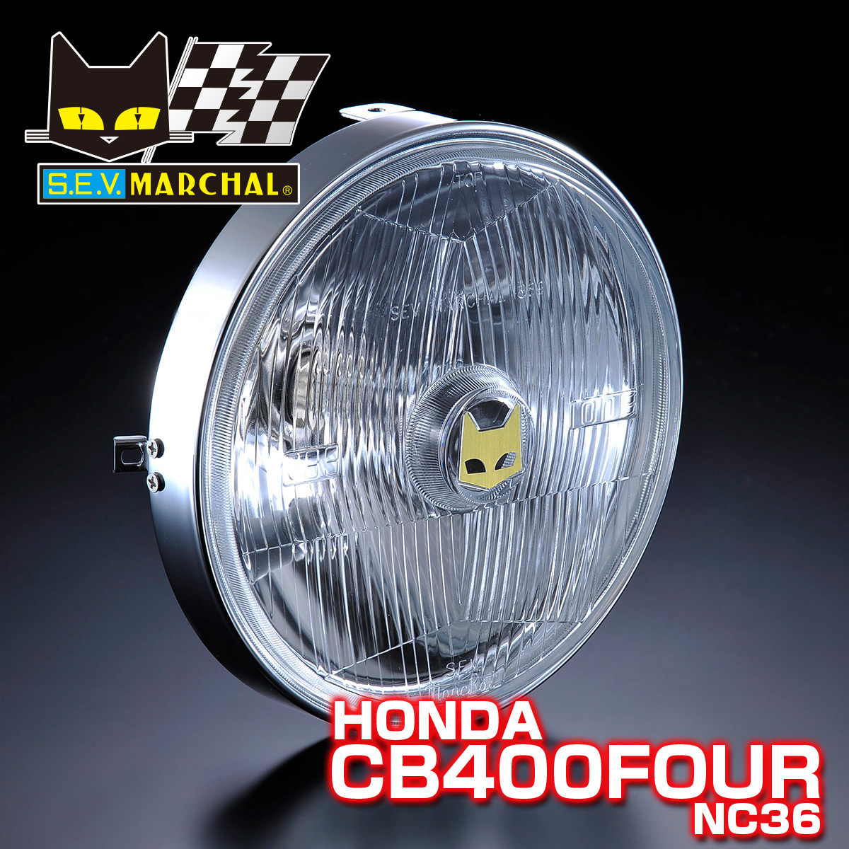 > CB400FOUR(NC36) マーシャル ヘッドライト 889 クリアーレンズ ユニット 純正ライトケース・外リムで装着!800-8002