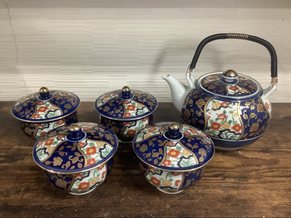 - 有田焼 祥楽 金彩 花柄 急須 蓋付き湯呑 4客セット 【i038】