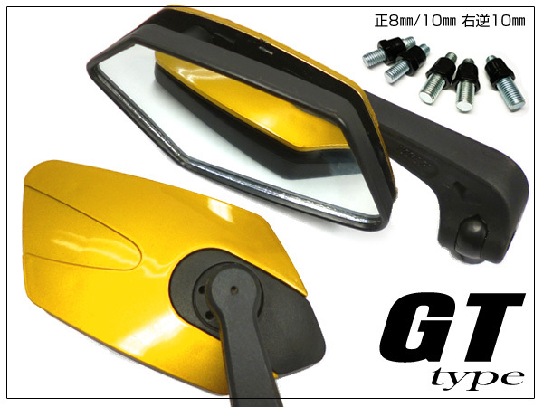 - 送料無料 訳あり特価 バイクミラー (F黄色I) 左右セット ポリゴンタイプ カスタムミラー イエロー 金 ゴールド 正8mm 10mm 逆10mm レタパ/