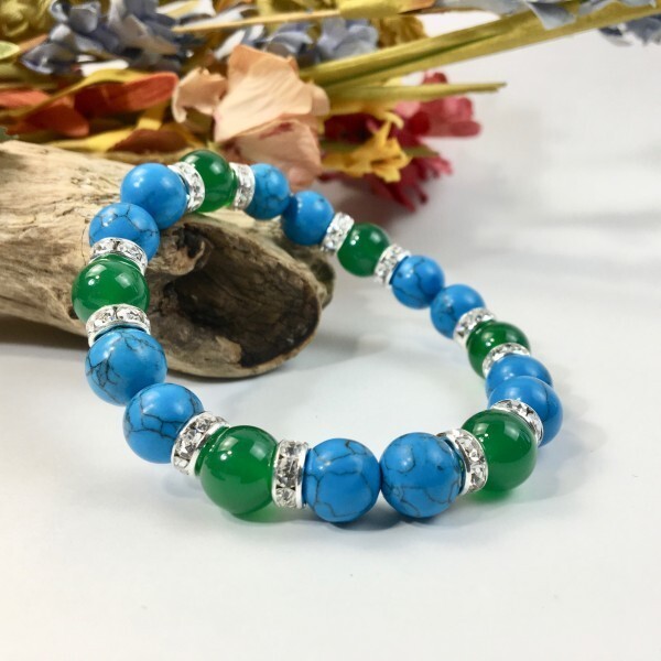 - パワーストーン ターコイズ×緑瑪瑙 ブレスレット (シルバー) 10mm メンズ・レディース 成功 繁栄 安全