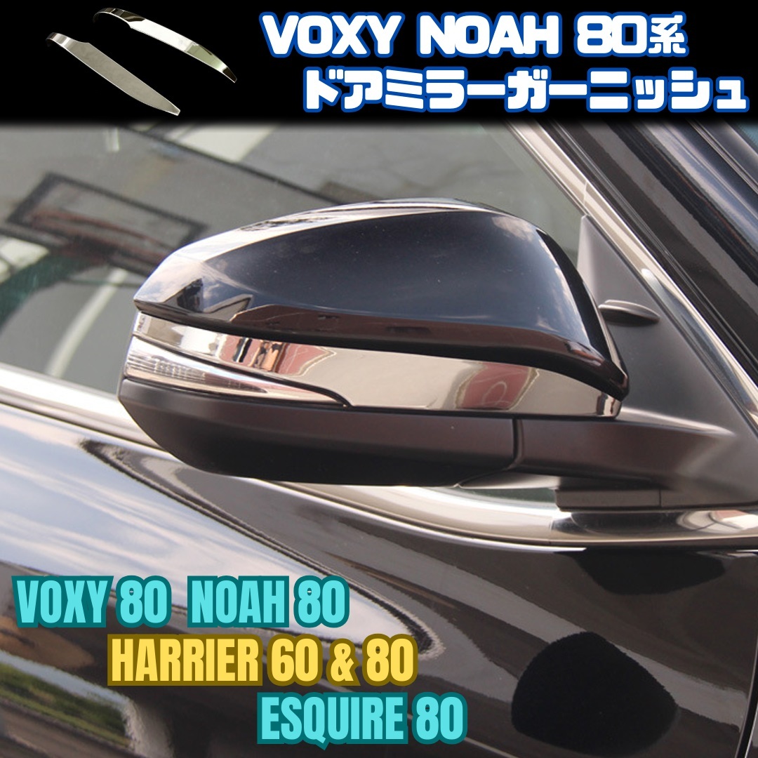 > 【VOXY NOAH 80系】 ドアミラーカバー / メッキ / トヨタ ヴォクシー ノア エスクァイア ハリアー対応 / ガーニッシュ 両面テープ取付