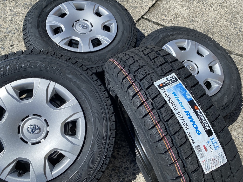 - 【2025年 新品スタッドレス付】200系ハイエース純正 195/80R15 107/105L ハンコック RW06 タイヤホイール4本セット キャップ付