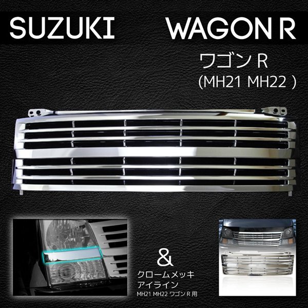 - スズキ ワゴンR MH21/22 フロントメッキグリル&メッキアイラン