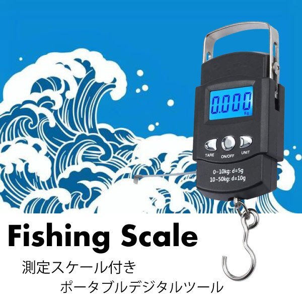 - 送料無料 フィッシングスケール 吊りスケール 吊り量り デジタル メジャー(1m) MAX50kg 風袋引き ポータブル LEDバックライト 釣り 計量