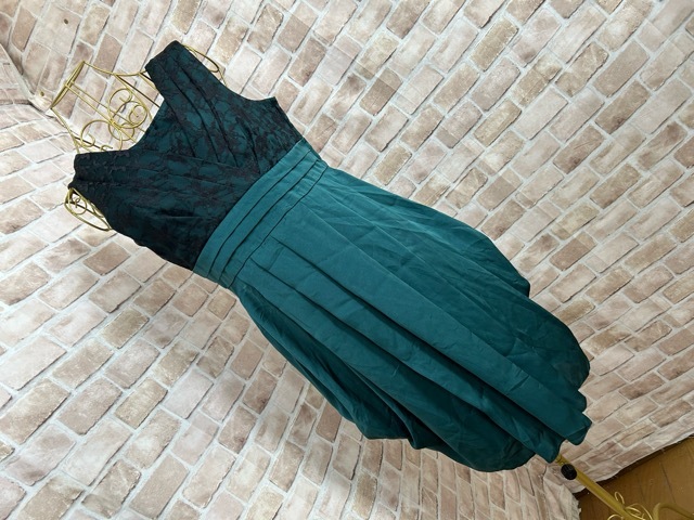 - k25136◎ドレスワンピース 衣装 グリーン×ブラックレース サテン 9号