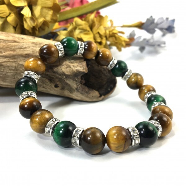 > タイガーアイ×グリーンタイガーアイ パワーストーン ブレスレット (シルバー) 10mm メンズ・レディース 金運 仕事運 願望成就