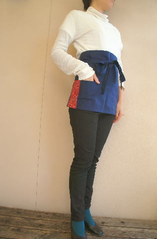 - 【現品限り】着物素材使用1200円手作りカフェエプロン【新品】