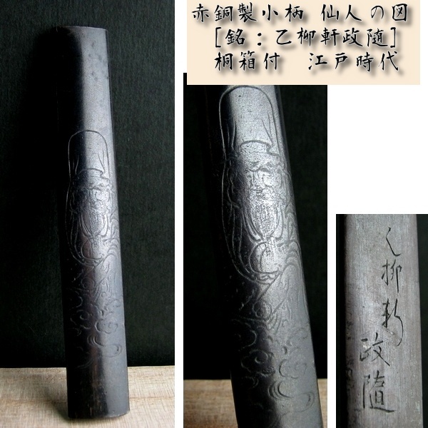 - 時代武具 赤銅製小柄 仙人の図 [銘:乙柳軒政随] 桐箱付 江戸時代/23h026