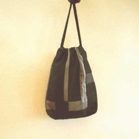 - 【入学、入園!】450円黒とグレーパッチワーク巾着袋 【手作り小物】