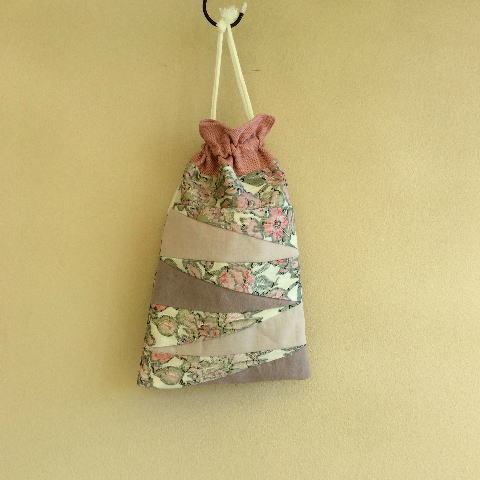 - 【入学、入園!】790円パッチワークのポケット付きバッグインバッグ巾着袋 【手作り小物】