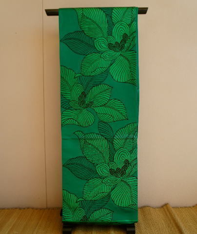 > 掘り出しました7900円【正絹】グリーン地袋帯【中古品】