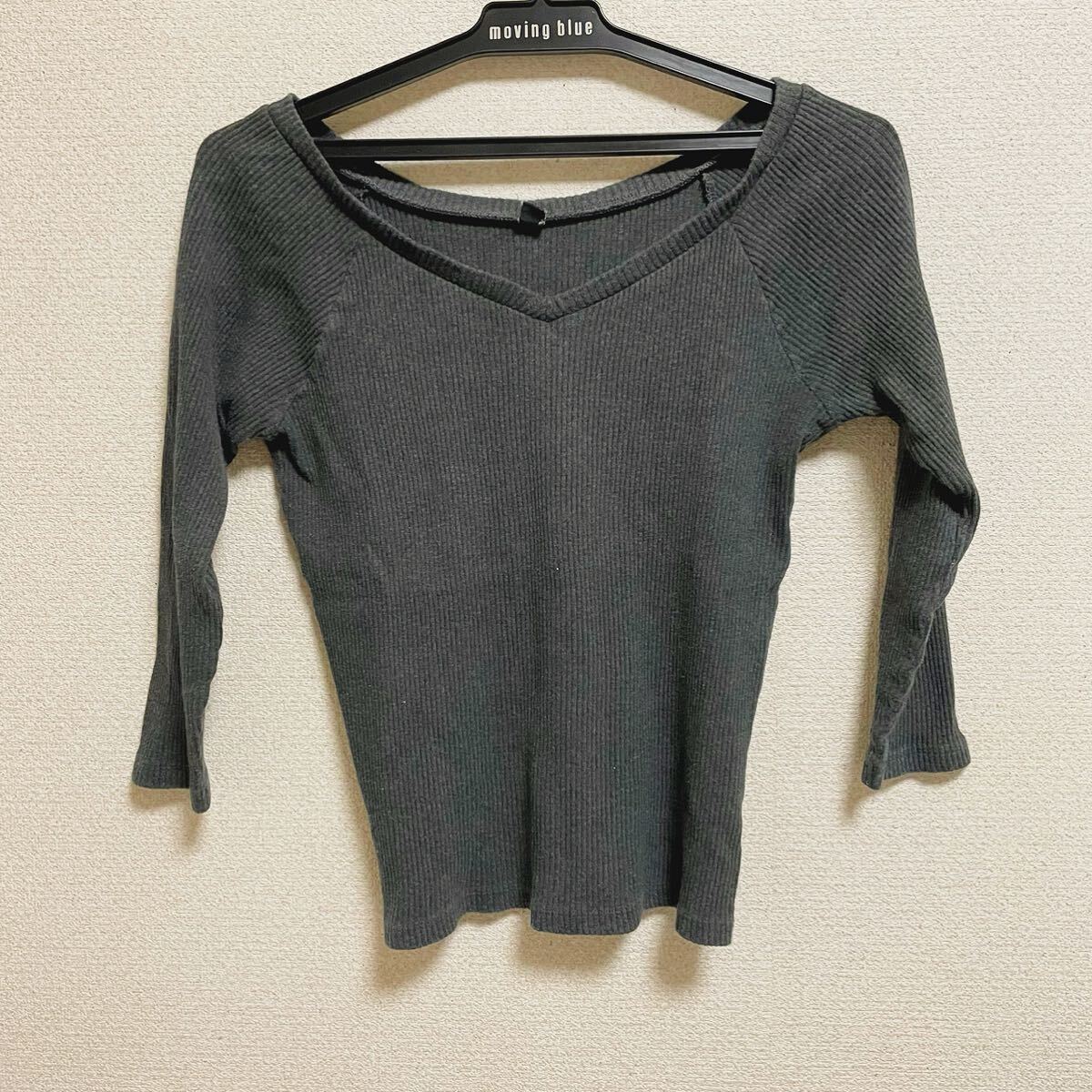 > 【美品】UNIQLO ユニクロ ダークグレー 濃灰色 シンプル カットソー 七分袖 ロンT ロングTシャツ