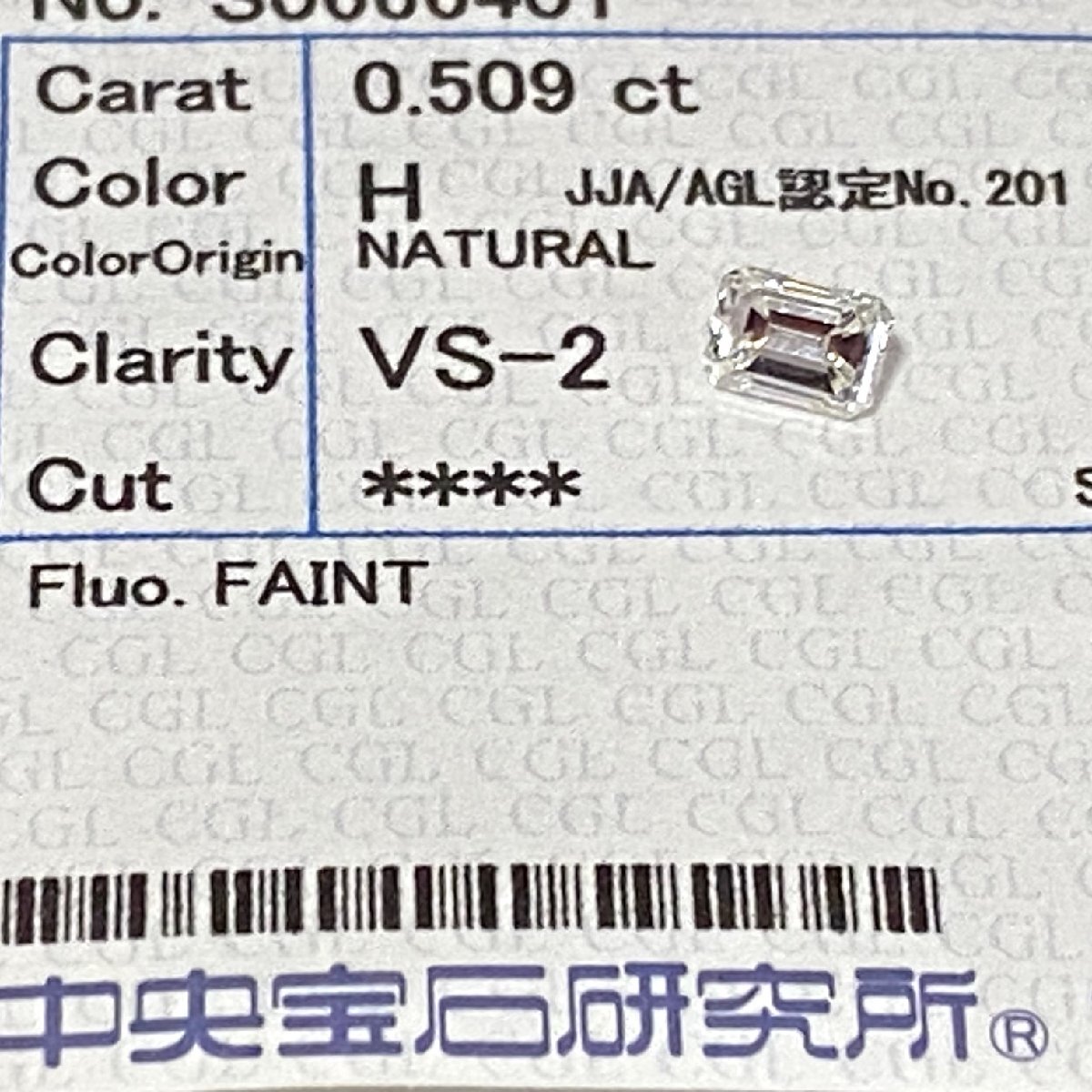 > ダイヤモンド ルース 0.509ct H VS-2 EM/エメラルドcut 中央宝石研究所/CGL ソーティング 天然ダイヤモンド ダイヤ ダイヤルース