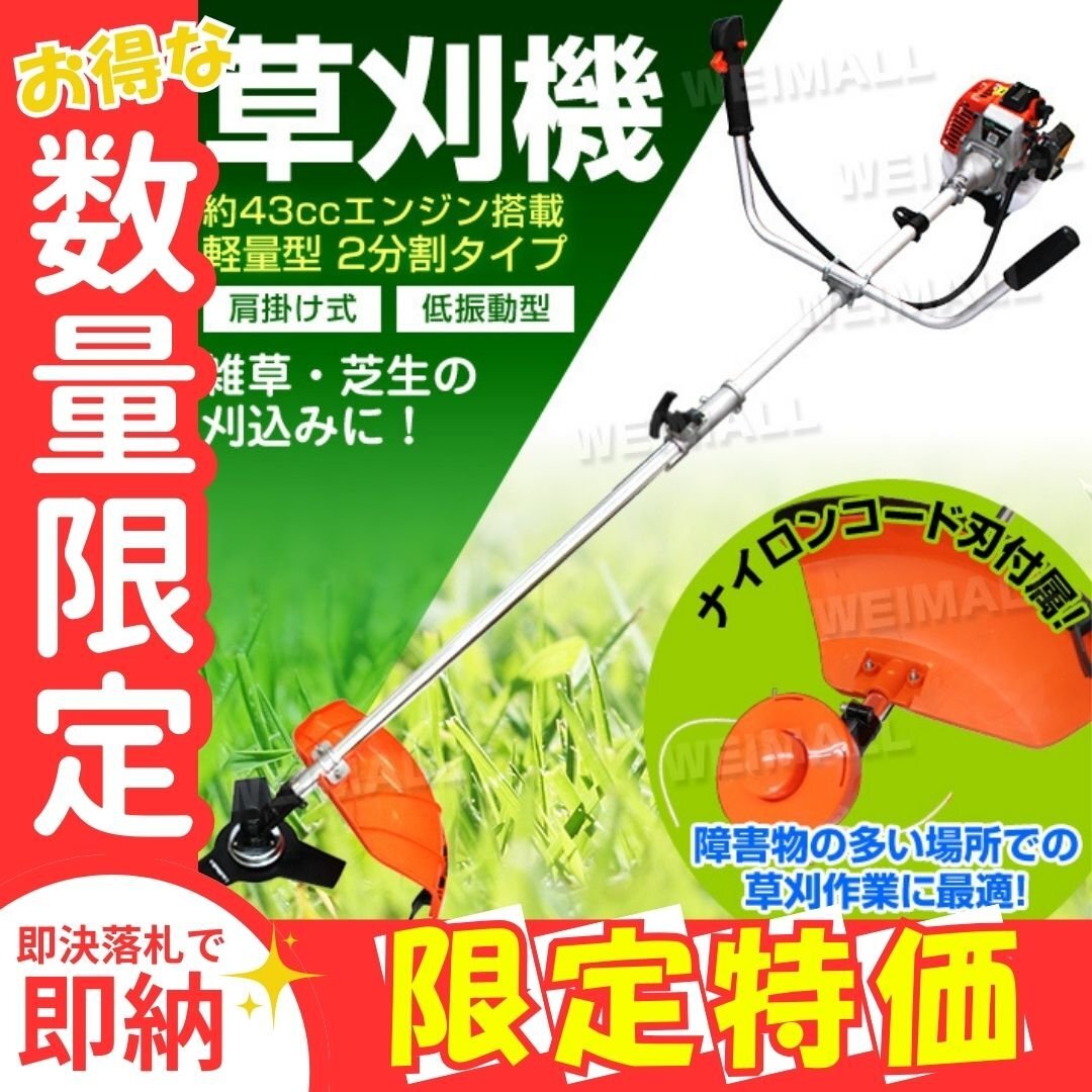 - 限定セール【43cc】草刈り機 エンジン式 草刈 草刈り 草刈機 刈払機 芝刈り 芝刈り機 肩掛式 ナイロンカッター 金属刃 清掃 庭 畑 公園