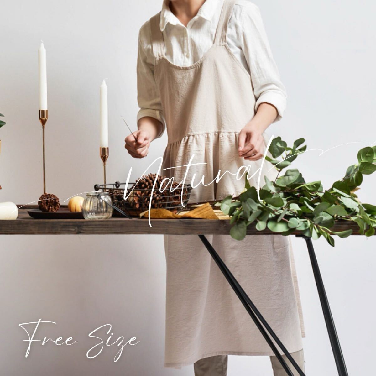 - 【ナチュラル】エプロン コットン シンプル 大人可愛い 北欧風 男女兼用