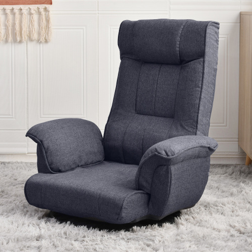- 回転式座椅子 肘掛け ハイバック 座いす リクライニング 1人掛けソファー フロア ソファー リラックスチェア 【ブルーグレー】