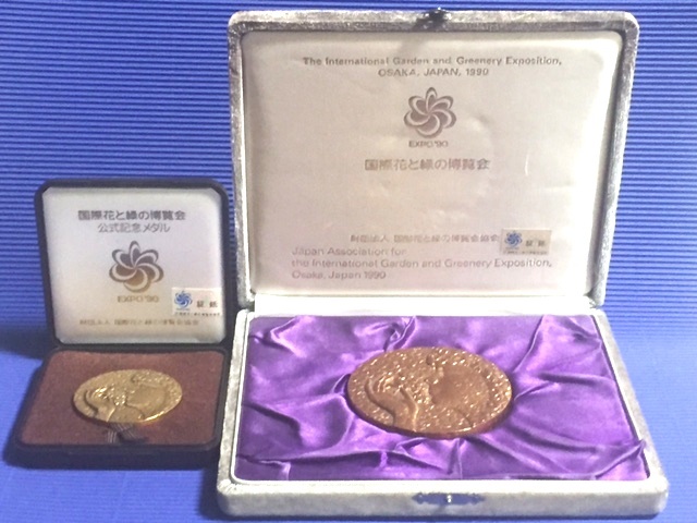 - ◎国際花と緑の博覧会 公式記念メダル 50mmと特大76mm銅メダル 加山又造デザイン◎ケース付