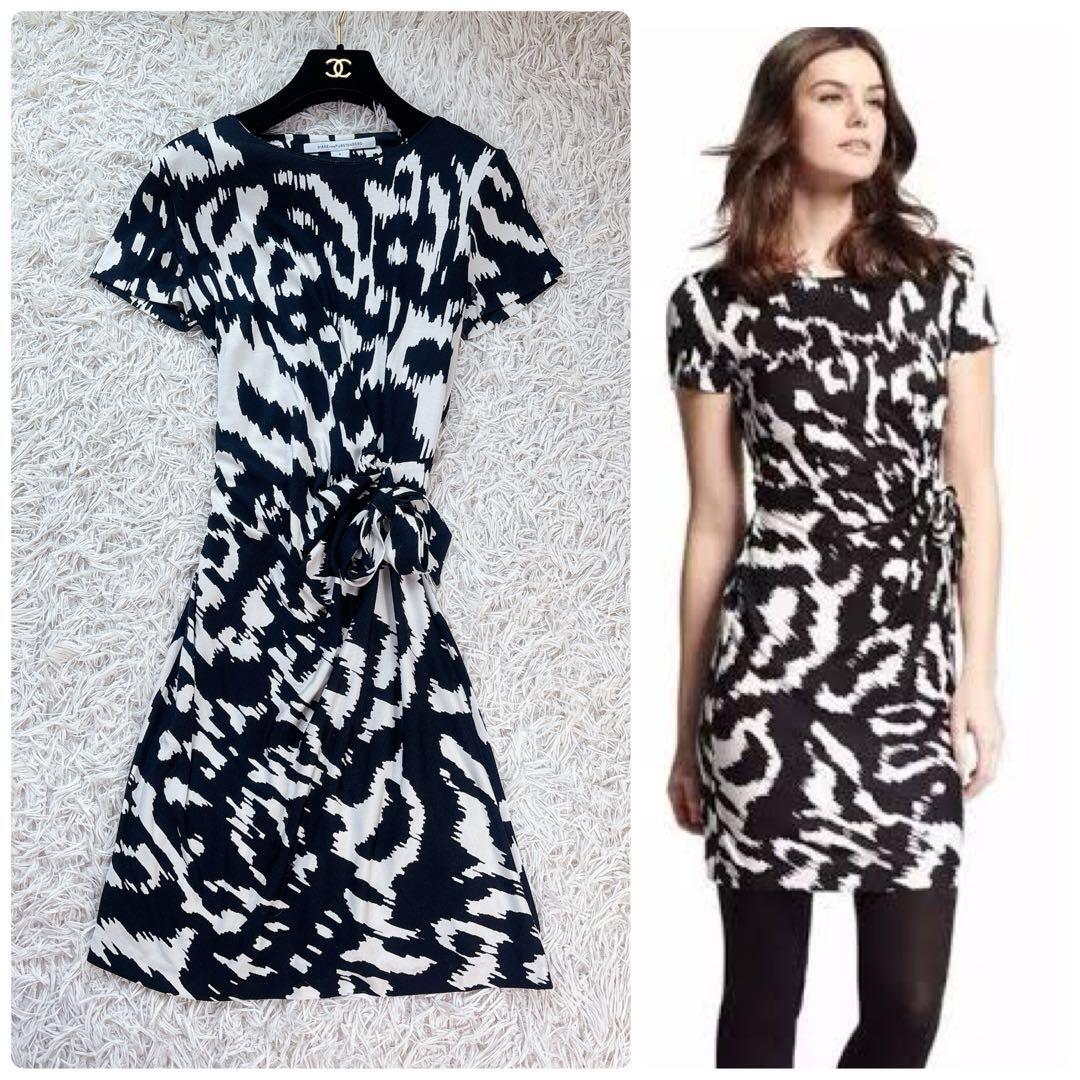 - DIANE von FURSTENBERG ダイアン フォン ファステンバーグ 半袖 カシュクールワンピース ラップワンピース 総柄 シルク 6 レディース