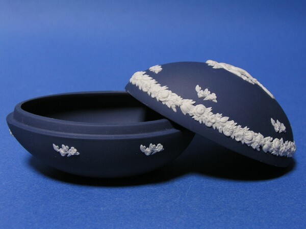 - ◎未使用 ウェッジウッド 紺色ジャスパー 大型卵形蓋物「天使」◎