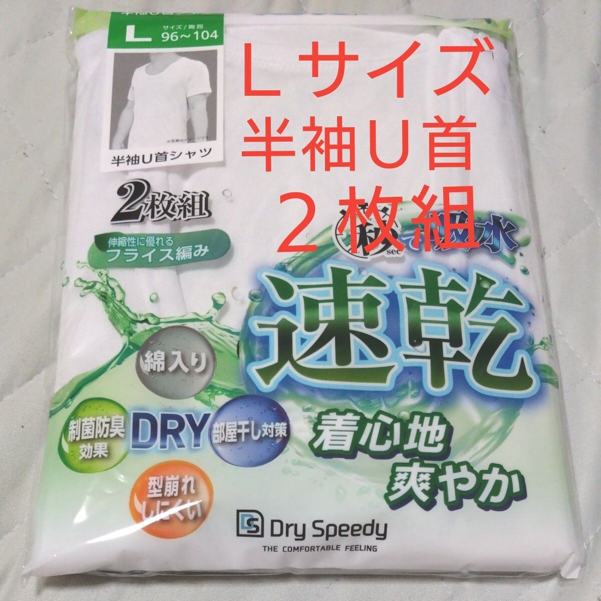 - ⑥メンズ 紳士 インナーウェア 半袖U首シャツ Lサイズ 2枚組 フライス編み 制菌 防臭 部屋干し対策 サイズL