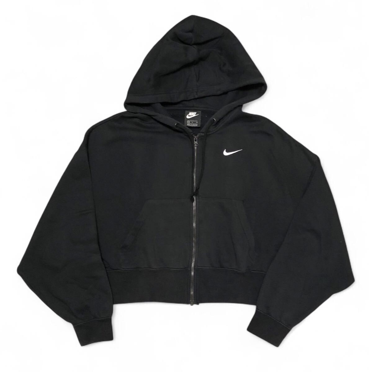 - ■NIKE ナイキ■スウッシュ刺繍 ショート丈 フルジップ スウェット パーカー ブラック S