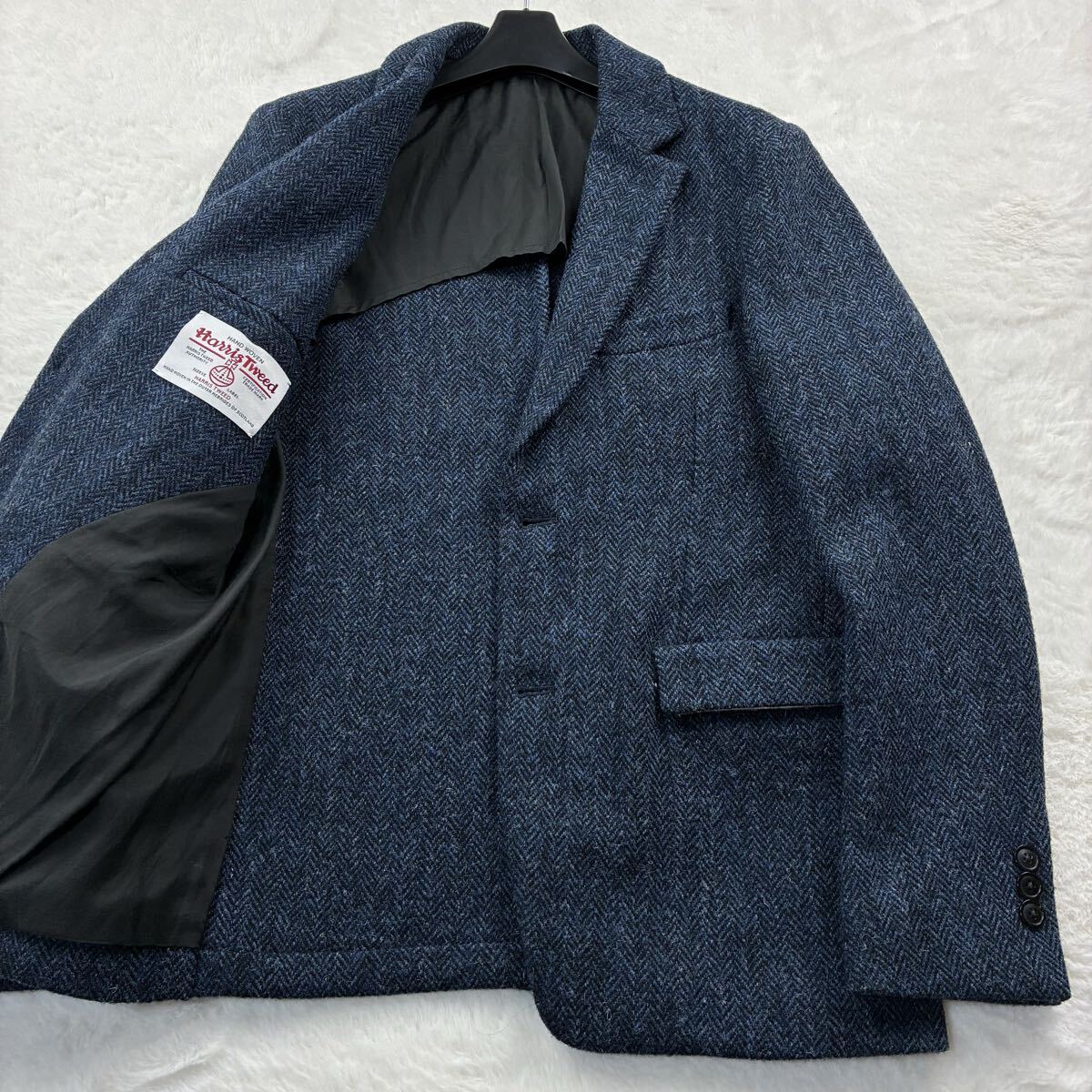 > 【未使用級】 TOMORROWLAND Harris Tweed トゥモローランド ハリスツイード テーラードジャケット ヘリンボーン アンコン 46(M) 紺灰