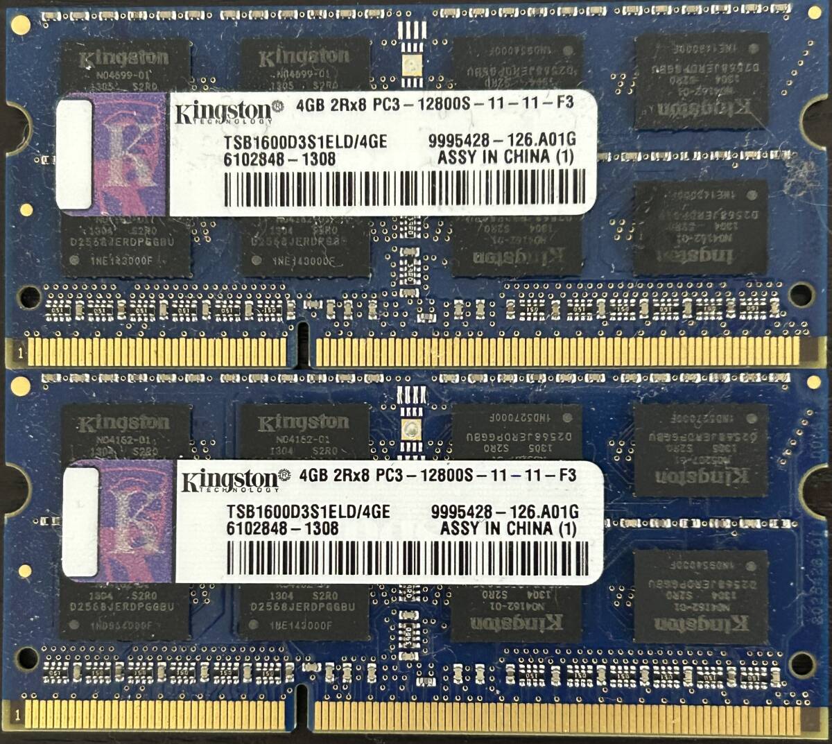 - 即決 動作確認済み Kingston キングストン SO-DIMM 204pin DDR3 PC3-12800S 4GB×2枚(8GB) ノートパソコン用 003