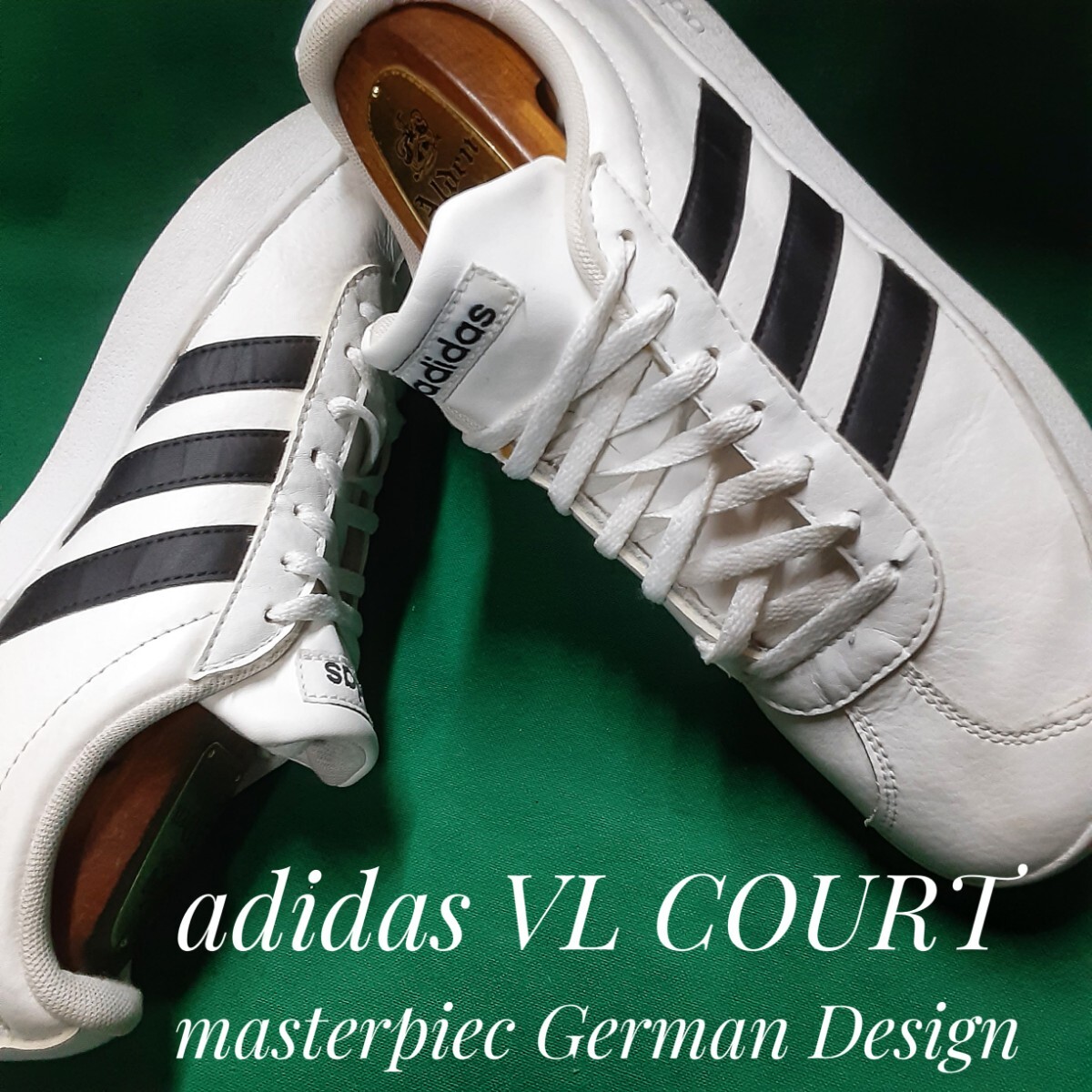 > 最値!18年製!名作ジャーマンデザイン!完売オールレザー!アディダス VL コート高級スニーカー!完売!モノクロームホワイト!白黒 27.5cm