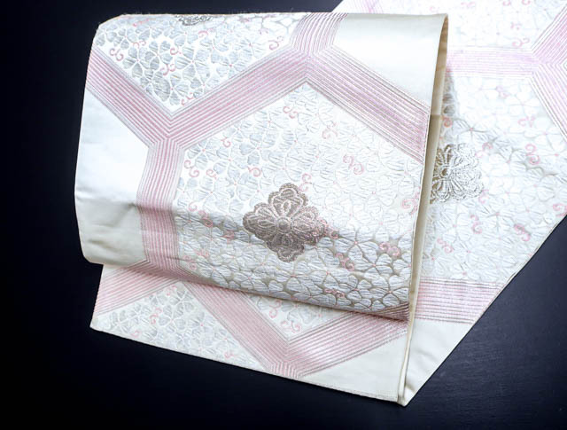 - 《京都一輝堂》【着物】袋帯 西陣織 花亀甲文 銀糸 24B-144
