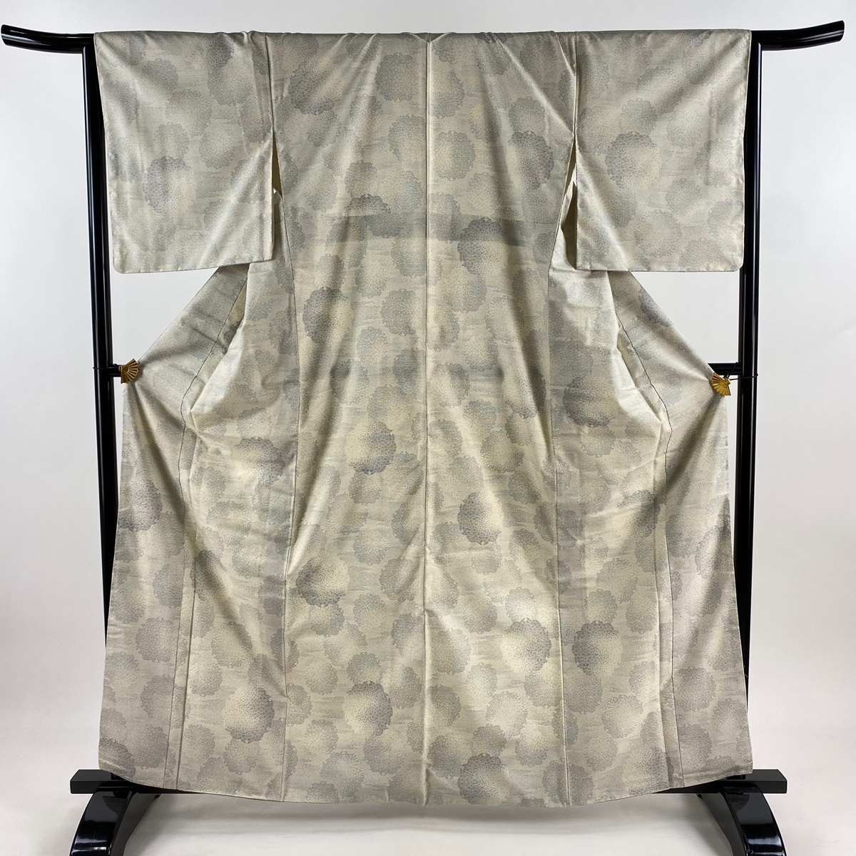 - 【美品】 紬 身丈162cm 裄丈65cm M 袷 雪輪 霞 クリーム 正絹 秀品 【中古】