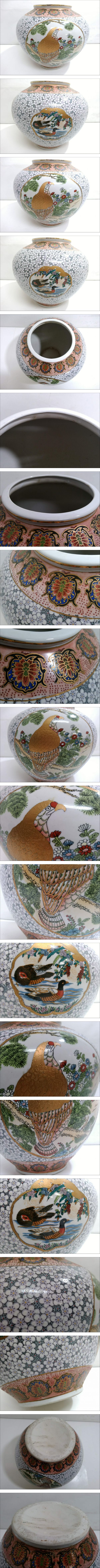 > 【うぶだし】金彩色絵 花鳥文 飾り壷/高さ約30cm/重量約3.4kg/窓絵/花瓶/花入/華道具/花器/生け花/床の間飾り/茶道具/12-RHB82