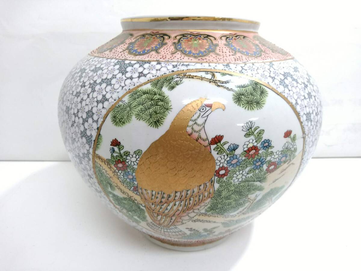 - 【うぶだし】金彩色絵 花鳥文 飾り壷/高さ約30cm/重量約3.4kg/窓絵/花瓶/花入/華道具/花器/生け花/床の間飾り/茶道具/12-RHB82