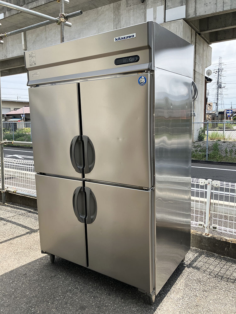> 2017年製 北沢産業 縦型冷蔵庫 KARD-120RM-F 100V 幅1200 奥行800 高さ1950mm 4ドア ピラーレス フクシマ 厨房 業務用 中古
