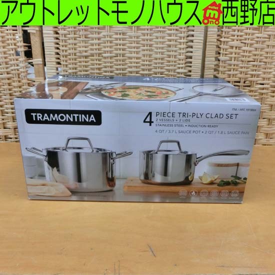 トラモンティーナ ステンレス 3層クラッドソースパンセット 片手鍋&両手鍋 開封済み未使用品 TRAMONTINA 食洗器可 札幌市 西区