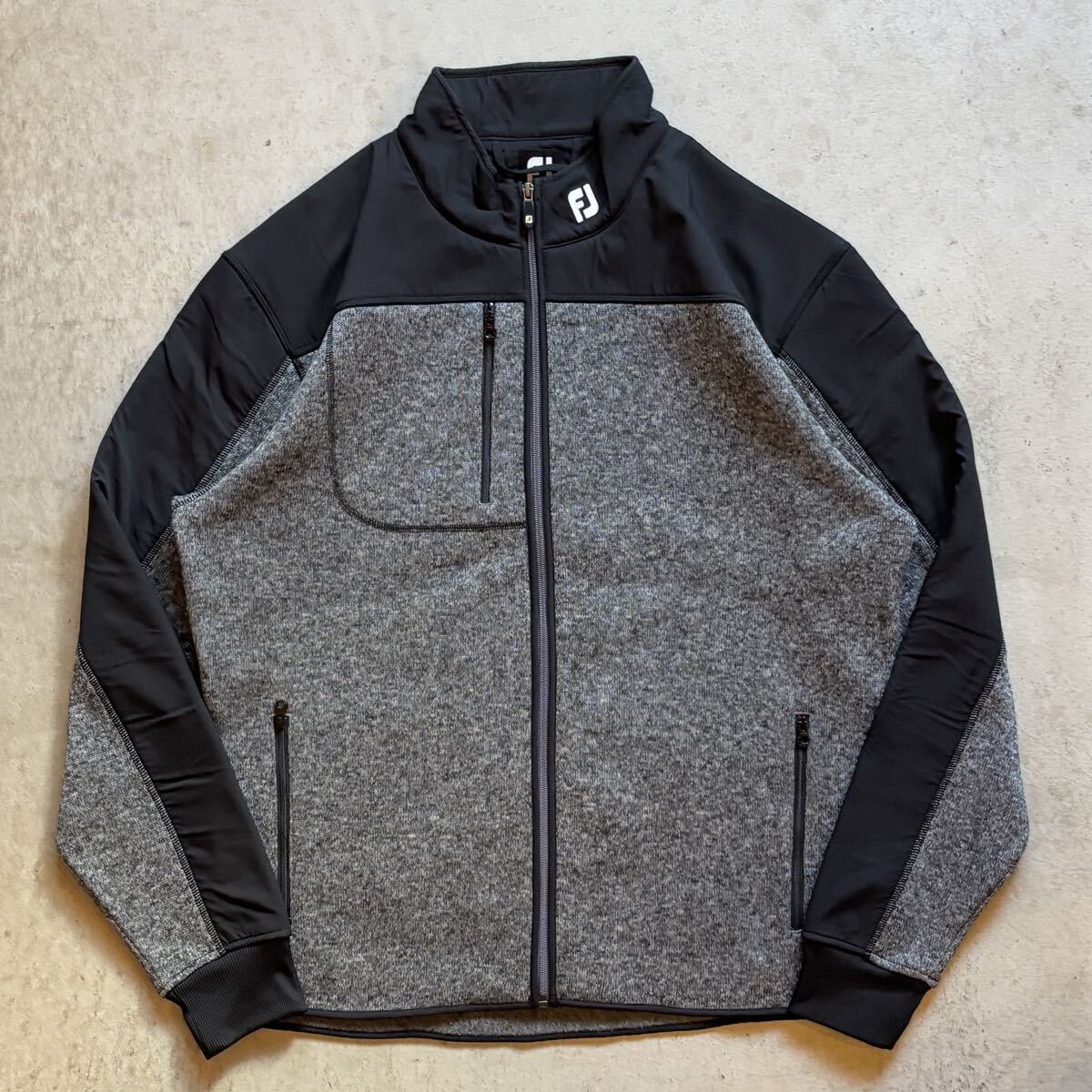 > 【FOOT JOY】FJ フットジョイ GOLF ゴルフ ウェア ジップアップ フリース ソフトシェルジャケット ブルゾン メンズ XL 灰/GRAY 黒/BLACK