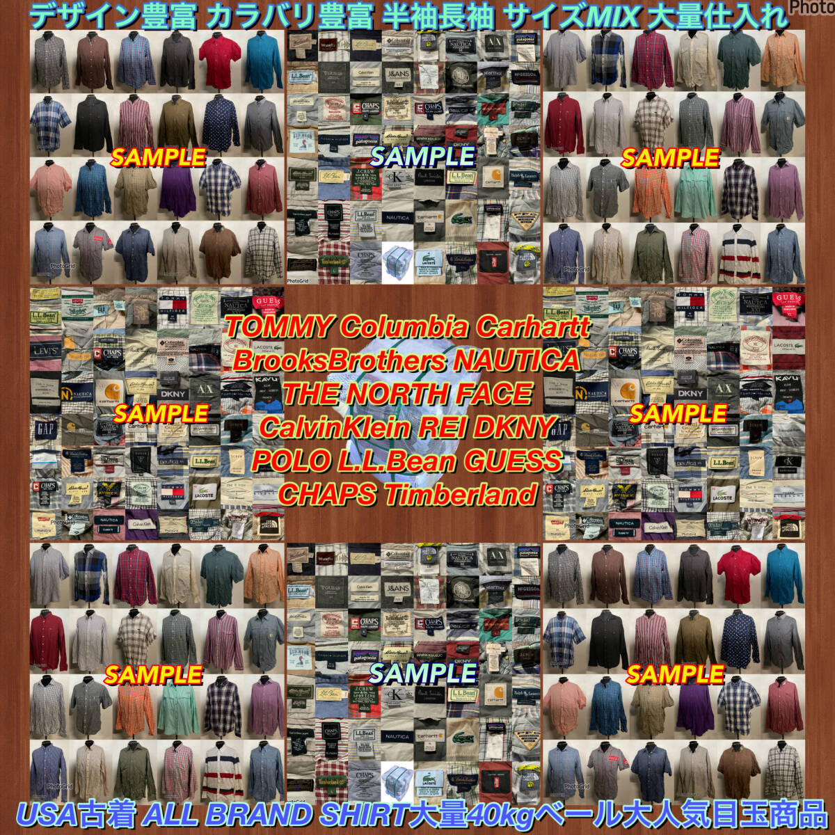 > 【T1495】★超目玉★ アメリカ古着卸オススメALL BRAND SHIRT 大量40kgベール TOMMY L.L.Bean Columbia NAUTICA Carhartt REI CHAPS 仕入れ