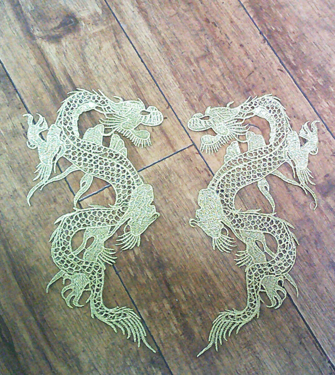 - DX(LG)【開運OK2枚セット】守護神☆大型■左右金昇龍『匠豪華 高品質』金糸アート レトロ◆ゴールデンドラゴンDRAGON龍 刺繍ワッペン