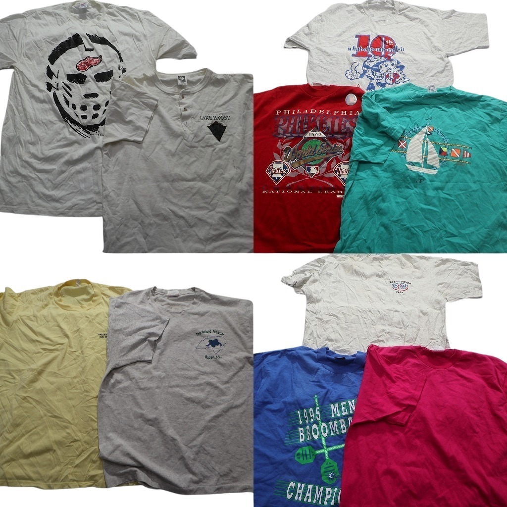 > 古着卸 まとめ売り 〜90s オールド シングル 半袖Tシャツ 10枚セット (メンズ XL ) ヘンリーネック プロチーム MLB NA2291