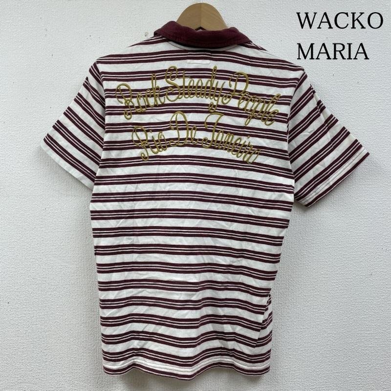 > ワコマリア ロゴ 刺繍 ボーダー 半袖 ポロシャツ バーガンディー ハーフボタン カットソー 初期タグ S