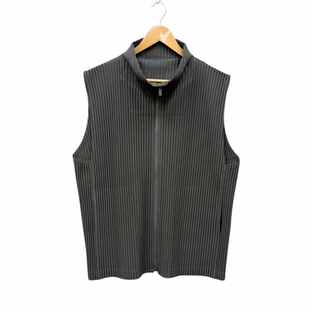 - 美品 HOMME PLISS ISSEY MIYAKE MONTHLY COLOR MARCH オムプリーツ イッセイミヤケ 前開きジップベスト グレーカーキ サイズ 3
