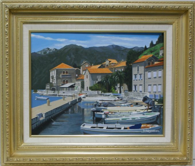 - ・作者名: 中河原英之 ・画題: コルト湾の小港 ・技法: 油彩画(原画)〈436〉HIO-1-R4-5-24-85.8