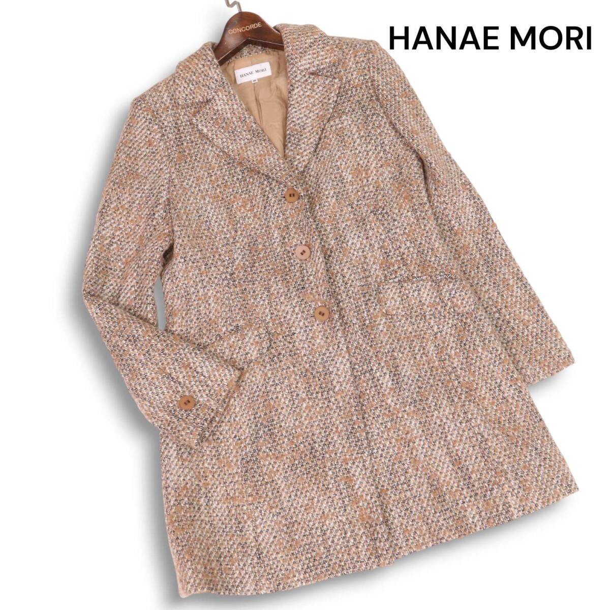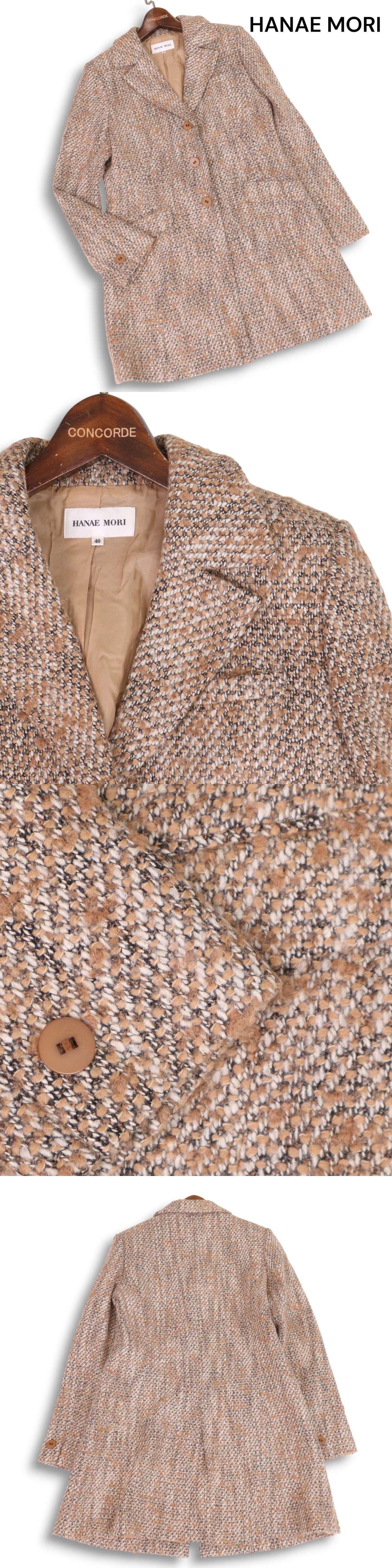 > HANAE MORI ハナエモリ 秋冬 イタリア製生地★ ウール ツイード チェスター コート Sz.40 レディース 日本製