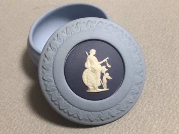 - ◎ウェッジウッド 3色ジャスパー 綺麗な小型鼓形蓋物◎e35