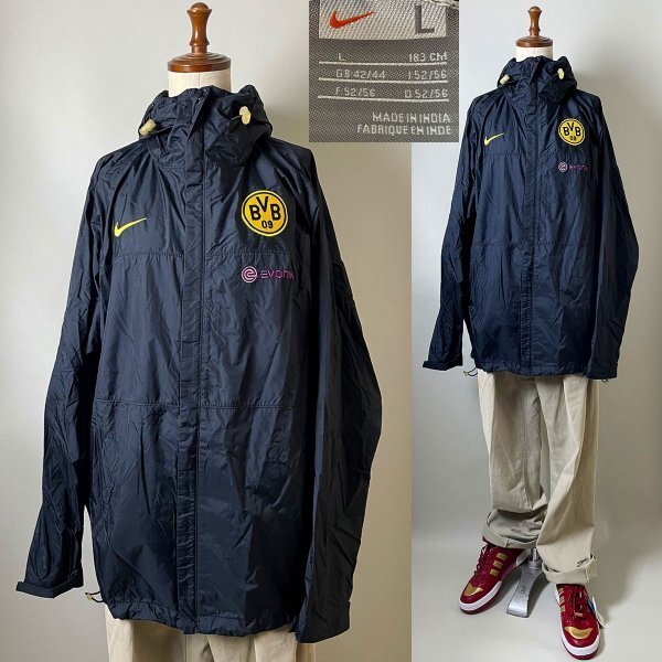 > ★【名作 激レア 2000年代】00s ビンテージ NIKE Dortmund BVB EVONIK ナイキ ドルトムント マウンテンパーカー シェル ジャケット L 黒