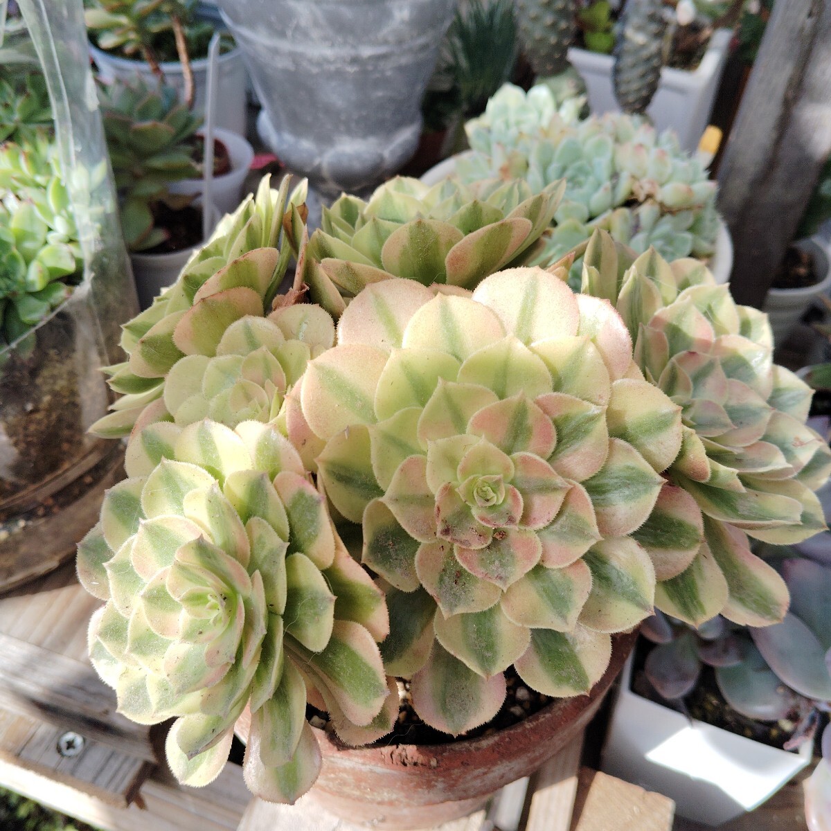 - アエオニウムピンクウィッチ錦 希少苗 多頭 群生苗 超美苗 韓国苗 4号鉢 抜き苗第4郵便発送