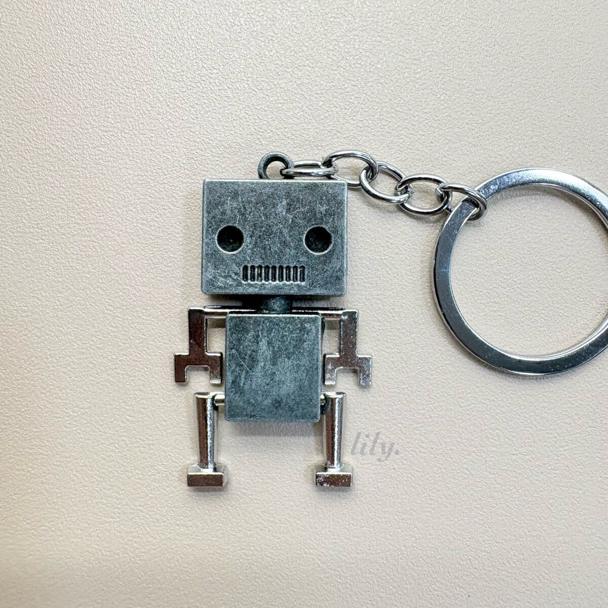 - 【キーホルダー】バッグチャーム ブリキ ロボット アンティークシルバー タイプA